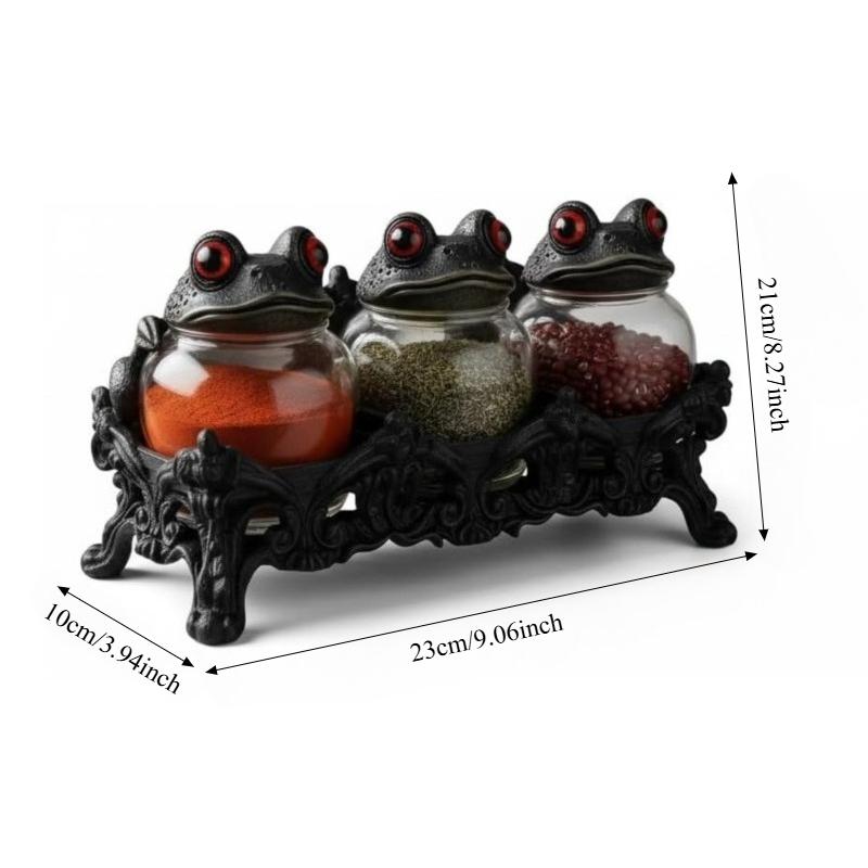 Frog Shaped 3pcs Spice Jars Set with Decorative Rack Seasoning Containers for Kitchen Spice Storage Organizer Spices Countertop
