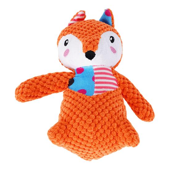This adorable fox-shaped pet toy features a vibrant orange design with contrasting colors to capture your dog's attention and encourage playful interaction. Equipped with a built-in squeaker, it produces engaging sounds that help relieve boredom and keep your pet entertained.
