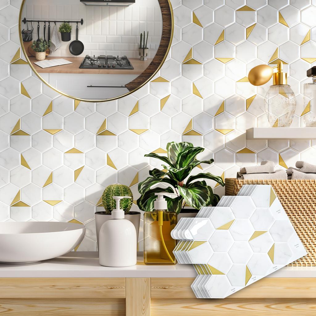 Hexogan Wall Tiles Peel and Stick Tile Stickers Waterproof Vinyl Wallpaper for Kitchens Balconies Sinks Bathrooms Restaurants