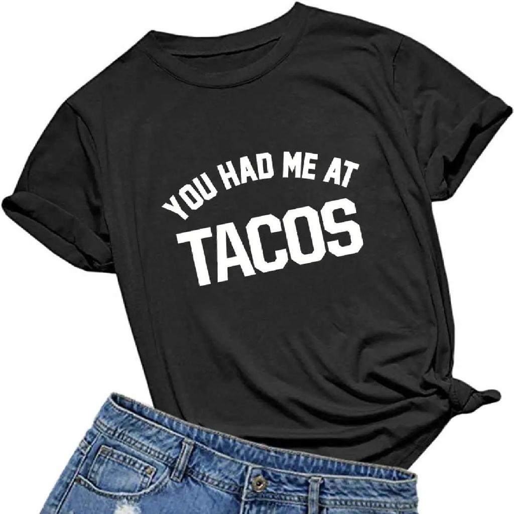 Womens You Had Me at Tacos Letters Printed Funny T-Shirt Tops Tees