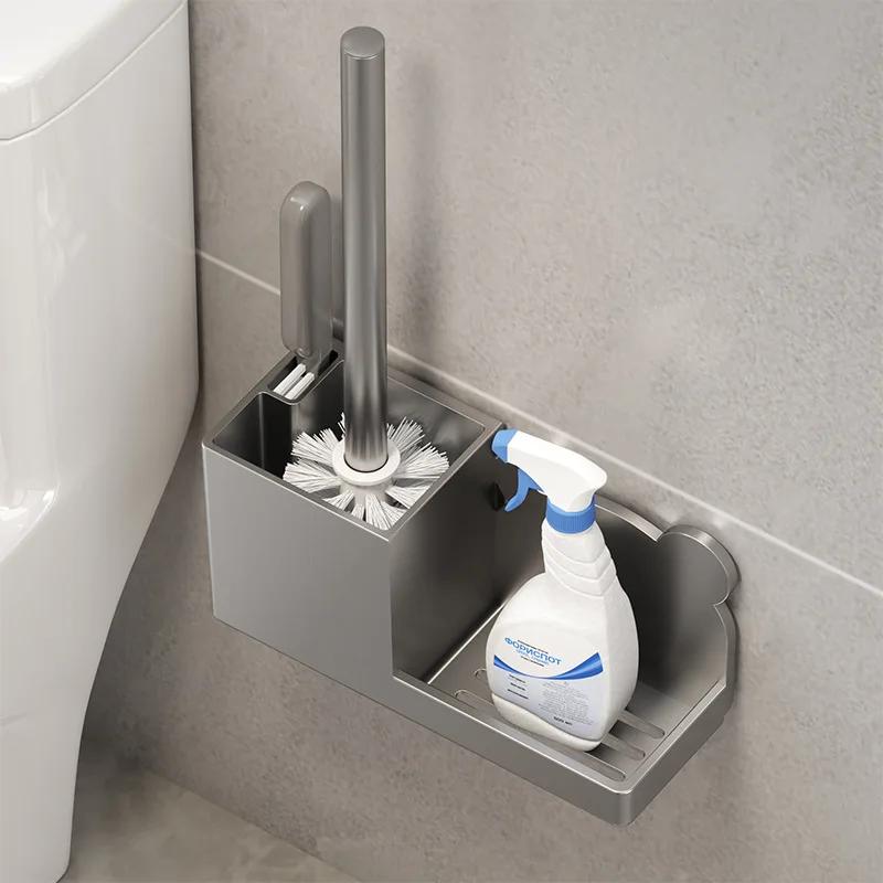 Space-Saving Toilet Brush Kit-360° Spin Silicone Brush Head & Wall-Mounted Holder | Resistant Bathroom Accessories for Household