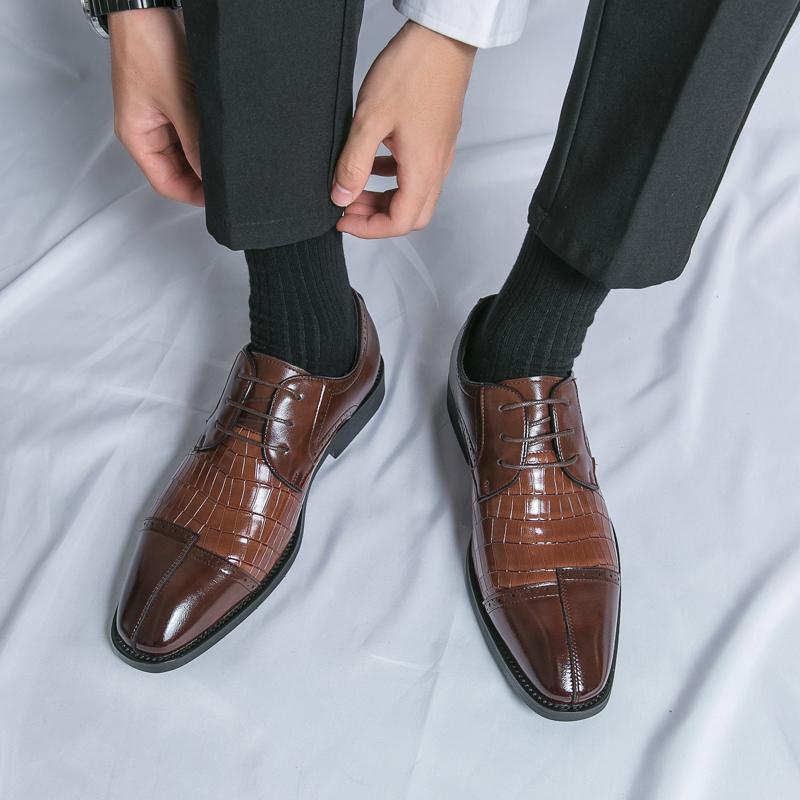 New 48 oversized trend men's simple brock carved leather shoes men stitching small square head business dress casual shoes