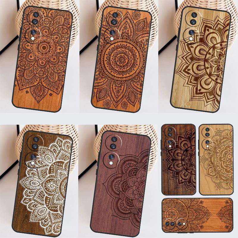 Mandala Floral Wood Case For Honor 90 Lite Magic 5 Pro 70 50 10 Honor X8 X7 X9 X9a X8a X7a X6a 9X 8X Back Cover
