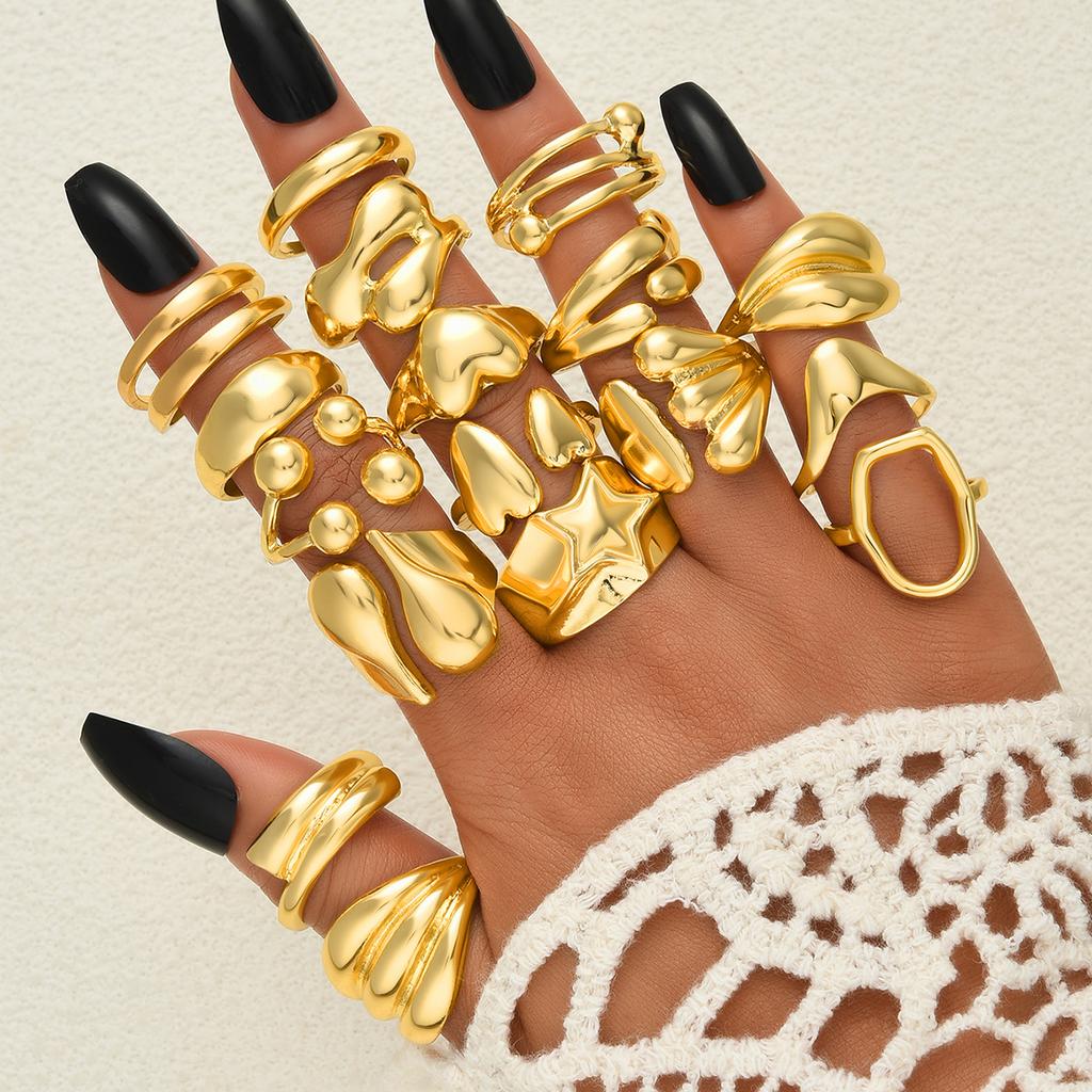 IF ME 17Pcs/Set Vintage Gold Color Irregular Geometric Rings Set for Women Elegant Exaggerated Twist Metal Thick Open Ring Jewelry