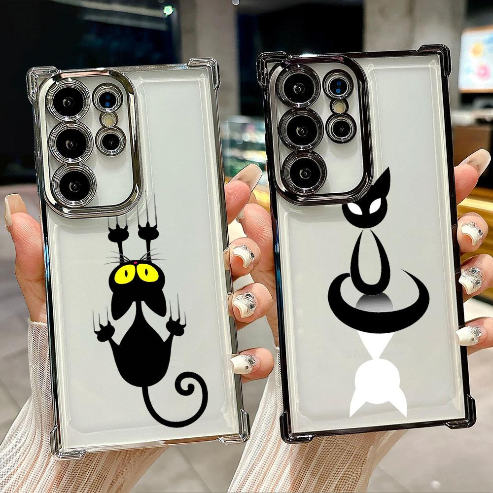 Cartoon Cute Little Black Cat Coque For Galaxy S26 Ultra Phone Case For Samsung S26 S25 S24 S23 S21 Ultra S20 FE S25 Plus Cover