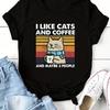 Women'S Cat And Coffee Pattern T-Shirt | Comfortable And Breathable Round Neck Short-Sleeved Casual Top, Simple Summer And Spring Women'S Clothing