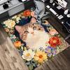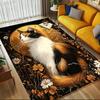 Vintage Floral Cat Print Carpet Cute Animal Themed Rug Modern Art Home Decor Soft Non-slip Absorbent Floor Mat for Living Room