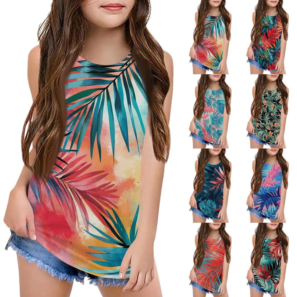 Dívčí Dětská Letní Trička s Krátkým Rukávem a Kulatým Výstřihem Tílka