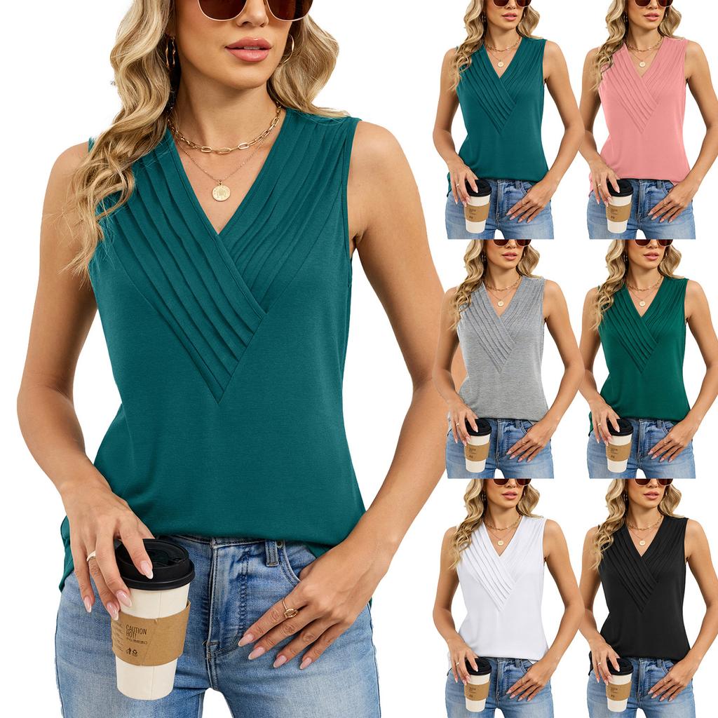 Women's Summer Fashion Color V-neck Sleeveless Vest Pullover T-shirt Top Describe Features: flowy sleeveless, round neckline,front pleated design, summer tunic shirt, breathable, loose fit, fashion dressy cas ual blouse. The summer casual blouse is very fresh to wear, you can dress this up for pair it with jeans. The cute design in this blouse makes you look more feminine. Nice arrange with shorts, pants, and skirts. Occasion: The casual flowy fitting blouse is suitable for going out, holidays, beach, photoshoots, school, work, street, party. Material: light, comfortable and flexible; wash/dry with cold water Product information Gender: Female Occasion: Casual Material: Polyester : casual Length: Regular Fit: Tight Thickness: Standard Washing method: Hand wash in cold water, hang or dry What you will get: 1 PC women's top