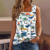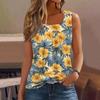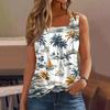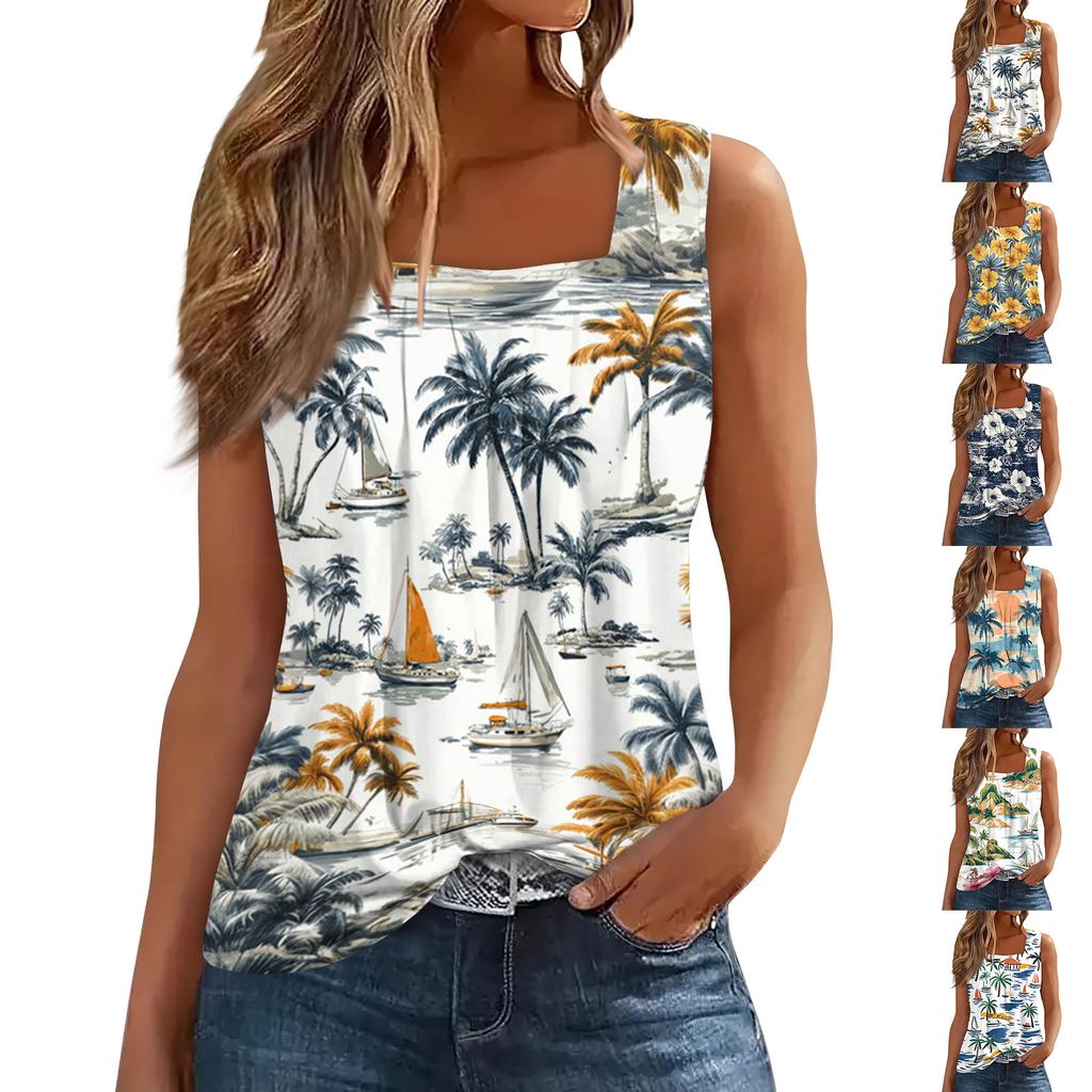 Dámské letní ležérní plisované tílko bez rukávů se čtvercovým výstřihem s potiskem