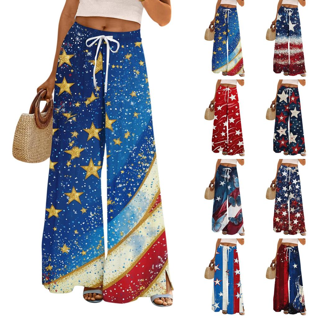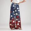 Ladies' loose casual independent day printed wide leg pants with elastic waist drawstring and pocket pants