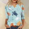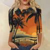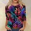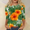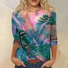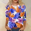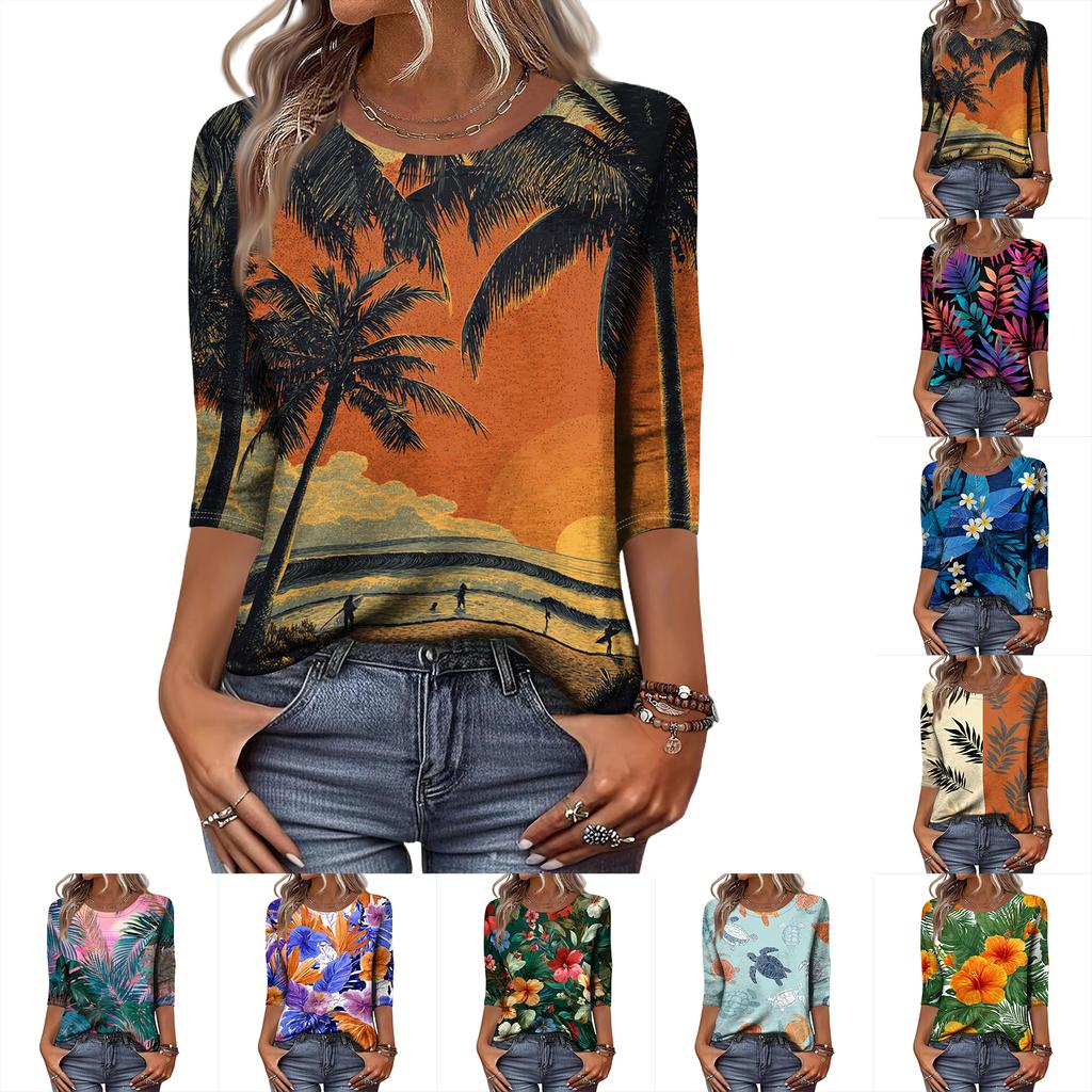 Women's Fashionable Casual Round Neck Three-quarter Sleeve Hawaiian Print T-shirt Top