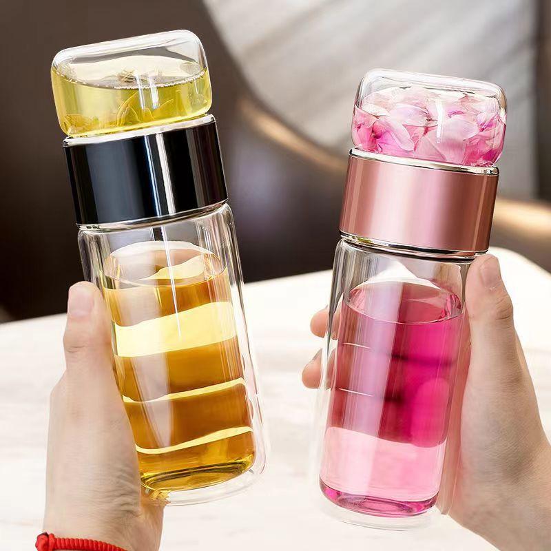 Láhev na vodu s vysokým obsahem borosilikátového skla, dvouvrstvé, šálek na vodu na čaj Infuser Tumbler Nádobí Láhev na vodu s filtrem na čaj