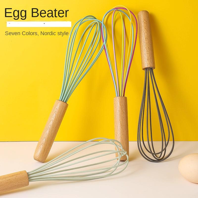 1pc silicone egg beater 10-inch wooden handle manual cake creamer and noodle mixer baking tool