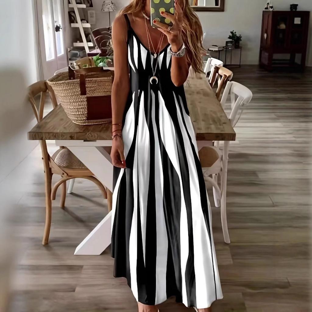 Summer New Women's Sleeveless Cami Dress, Fashion Loose Fit Geometric Pattern Casual Dress for Women, European American Style Crossbody Apparel