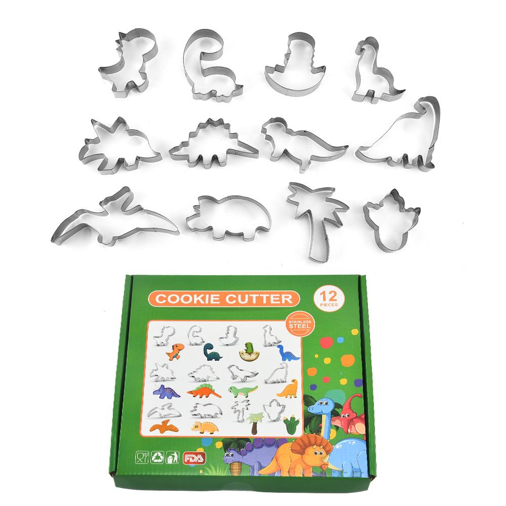 12Pcs/set,Stainless Steel Biscuit Mold, Cartoon Dinosaur Series, Tyrannosaurus, Rex, Pterosaur, Animal Cake Mold, DIY icing Mold