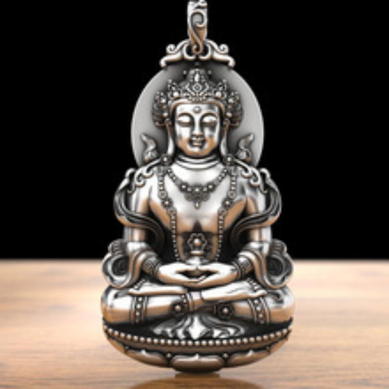 Necklace Nanhai Guanyin Solid Bodhisattva Male and Female Sitting Lotus Three-dimensional Natal Buddha Pendant
