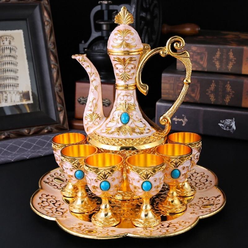 European Wine Set, Alloy Home Wine Pot Wine Glass Set, Exquisite Vintage Wine Glass, Wine Pot Home Living Room Decoration, 1Set