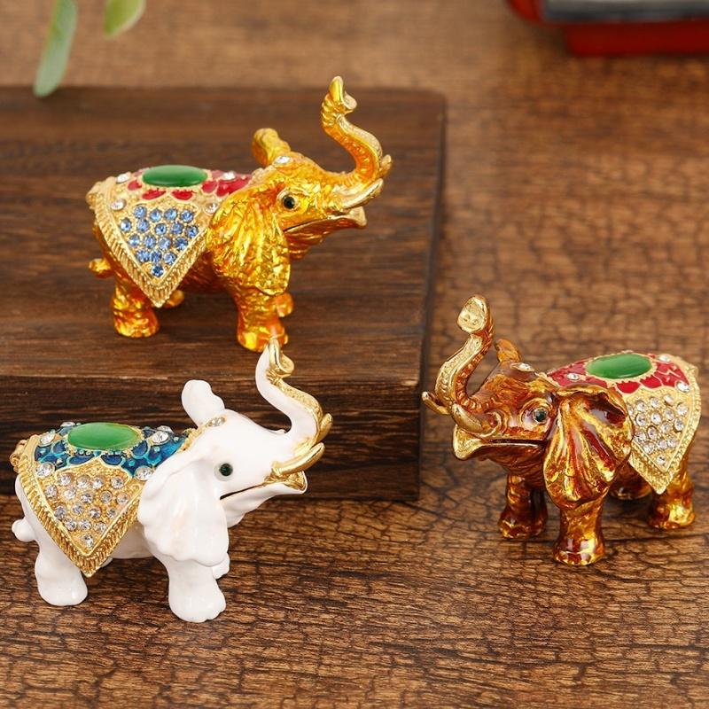 Mini Jewelry Storage Box Inlaid Gem Organizer Enameled Elephant Alloy Earrings Ring Holder Storage Jar Unique Festival Gift