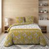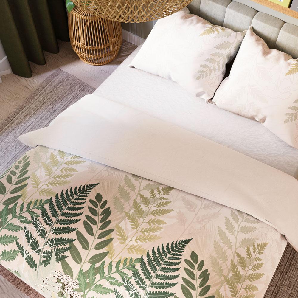 FERNA bedding set 160x200 cm - satin cotton, beige, botanical pattern