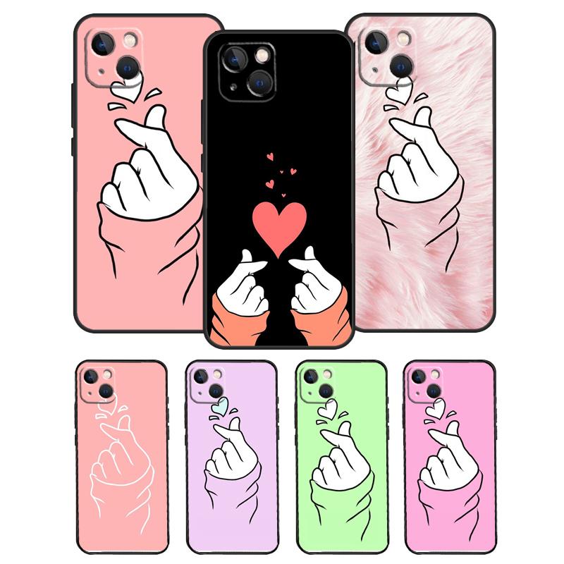 Kpop Hand Finger Heart Phone Case For iPhone 17 Pro Max 14 13 12 11 15 16 Pro Max mini 15 16 Plus 16e Back Cover