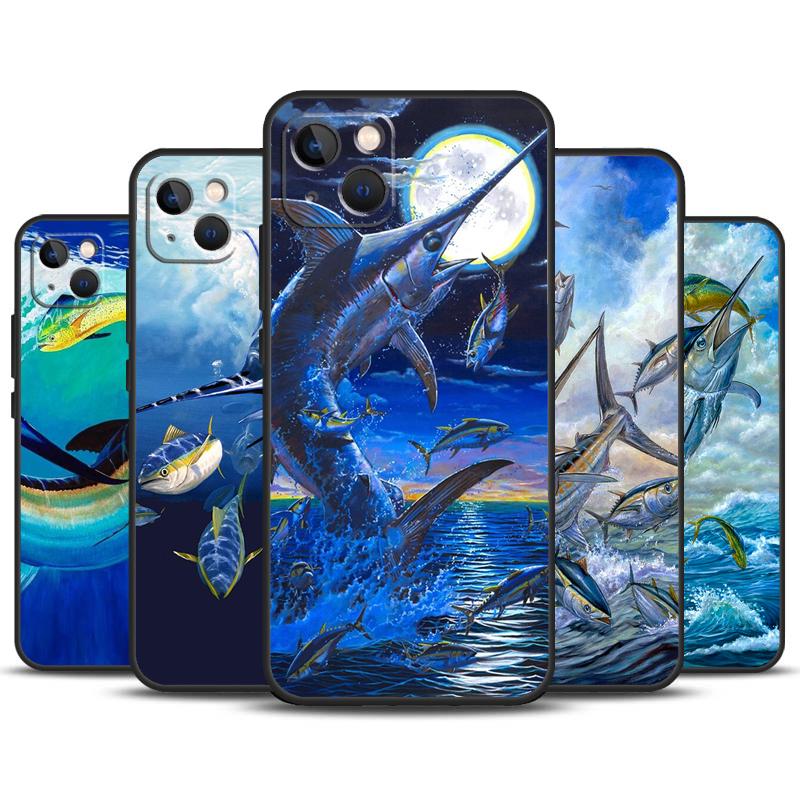 Blue Marlin Painting Case For iPhone 16 15 14 13 12 11 Pro Max Plus X XS Max XR 7 8 Cover Accessories