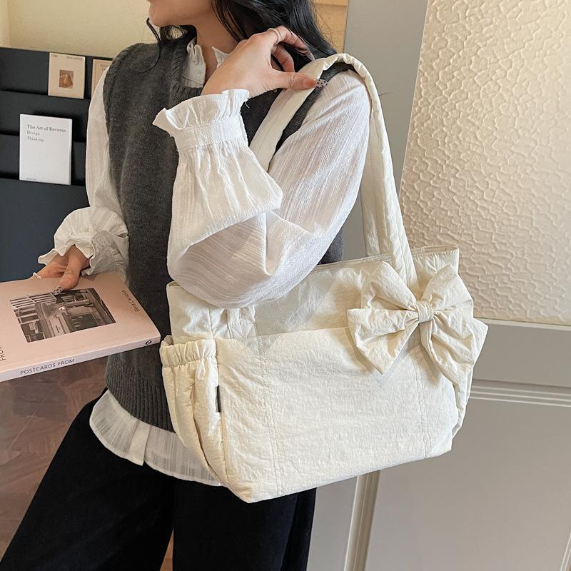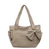 Bow cotton clothes tote bag women's solid color versatile underarm shoulder bag women's large-capacity commuter laptop bag