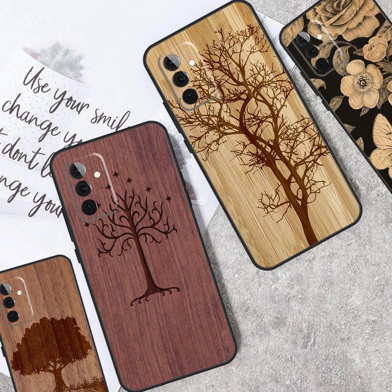 Tree Flower Bamboo Wood Case For Samsung Galaxy A14 A24 A34 A54 A53 A33 A13 A52 A32 A22 A12 A71 A51 A15 A25 Coque
