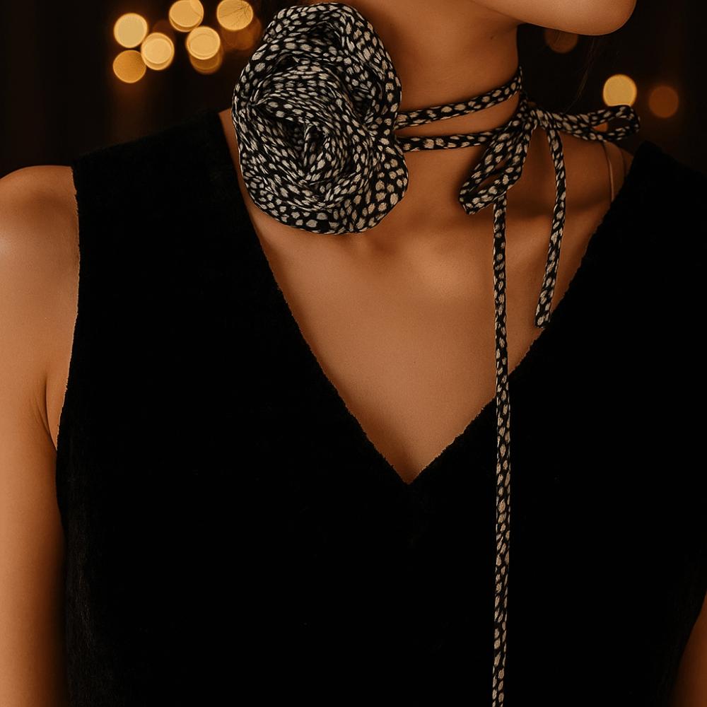 Elegant Chiffon Necklace Korean Style Leopard Print Chocker Flower Clavicle Chain Party