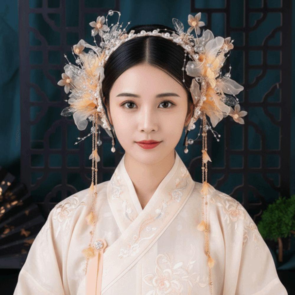 Flower Hanfu Tassel Hair Hoop Beads Swaying Fairy Headwear Antique Chinese Ancient Hairband Girls