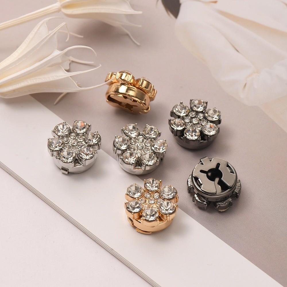 Brass Base Flower Sleeve Button Rhinestone Button Cover Clip Suit Accessories