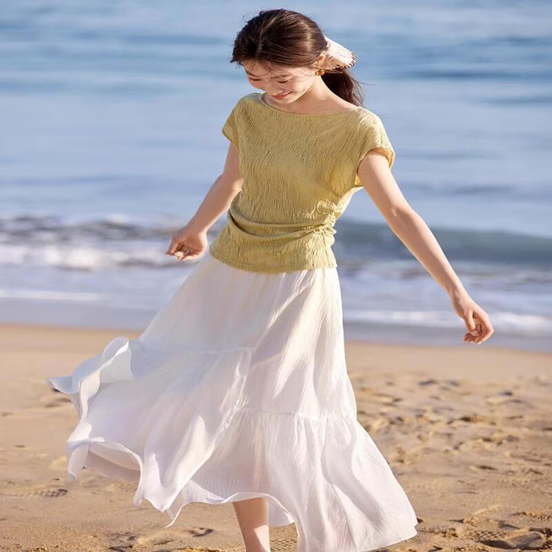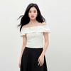 Mohanyimei Women's Textured Off-Shoulder Slim T-Shirt