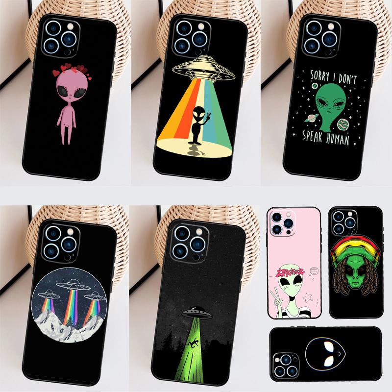 Cartoon Space Alien UFO Case For iPhone 11 12 13 14 16 15 Pro Max Mini X XS Max XR Plus Cover Coque
