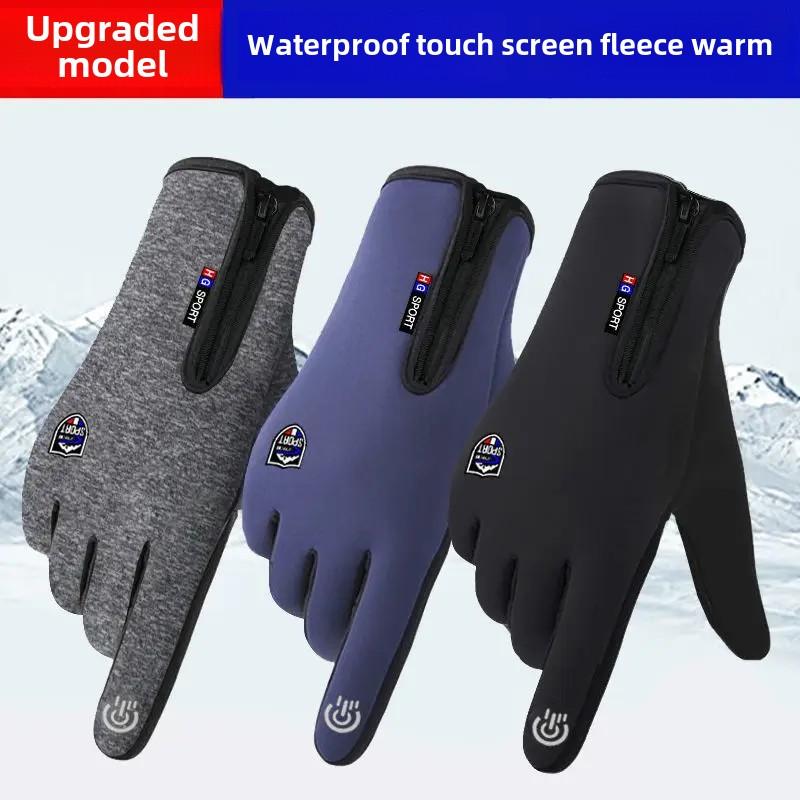 Winter Warm Gloves Windproof Anti-Slip Motocycle Gloves Thicken Plush Thermal Waterproof Touchscreen Reflective Driving Gloves
