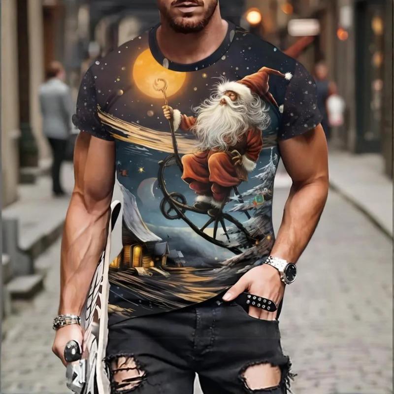 3D Santa Claus Print Men's T-Shirt Festive Holiday & New Year Gift Idea, Casual Short Sleeve Round Neck Top for Christmas Style