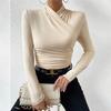 Women's Fashionable Design Cross-Neck Slim-Fit Versatile Pleated T-Shirt