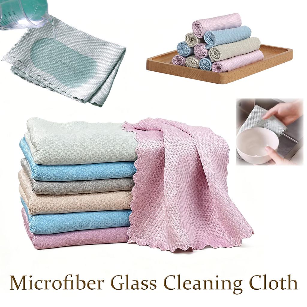 5 Pieces Of Microfiber Glass Cleaning Cloth Lint-free Window Car Kitchen Mirror No Trace Reusable Fish Scale Cloth Polishing