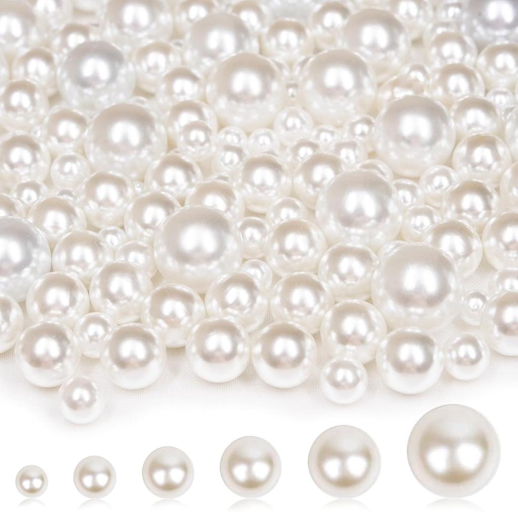 2000PCS Pearls for Crafting, Ivory No Hole Beads for Centerpieces Vases, Assorted Sizes Bulk Fake Pearls Beads for Vase Filler,Jewelry Making