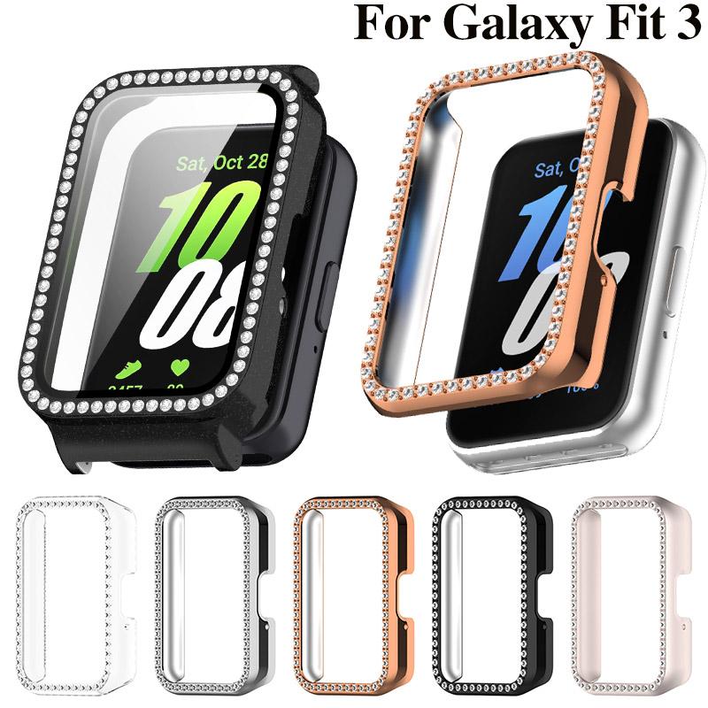 Ochranný Bling PC dutý kryt pro Samsung Galaxy Fit 3 Chytré hodinky Pásek Diamantový Křišťálový Nárazník Ochranný kryt Obrazovka
