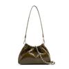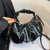 Little Golden Ball Chain Wrinkled Cloud Bag Handbill Shoulder Underarm Black Leather Design Unique Crossbody