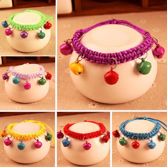 Necklace Adjustable Abrasion Resistance with Bells Woven Rope Pet Collar for Dods