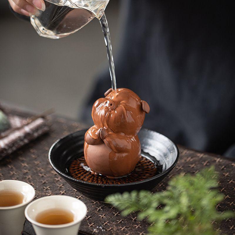 Ceramic Zodiac Pig Tea Pet Desktop Ornament Zen Tea Set Accessory Creative Home Decor Gift for Tea Lovers Meditation Room