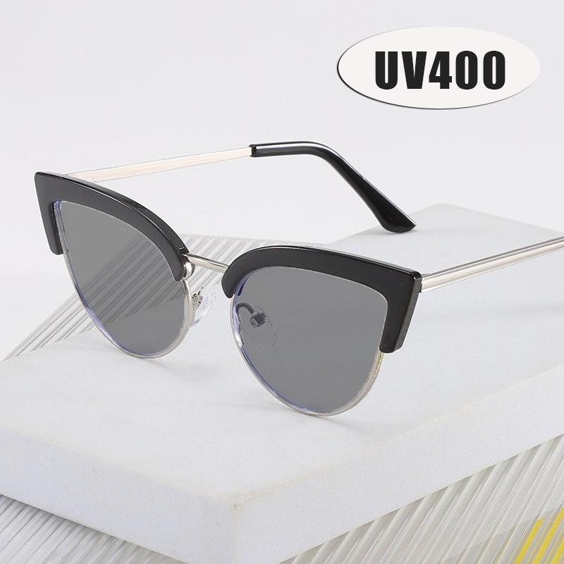 Male and Womens Durable Metal Metal Half-Frame Fashionable Cat-Eye Sun Glasses Glasses Vintage Ins Street Design Eyewear Outdoor UV400 Sun