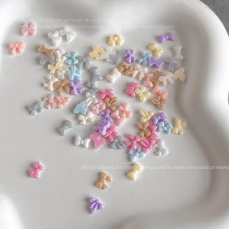 50Pcs Candy Color Bow Nail Art Parts Charms Mini Resin Ribbon Nail Rhinestones Diy Summer Nail Art Decor Accessories