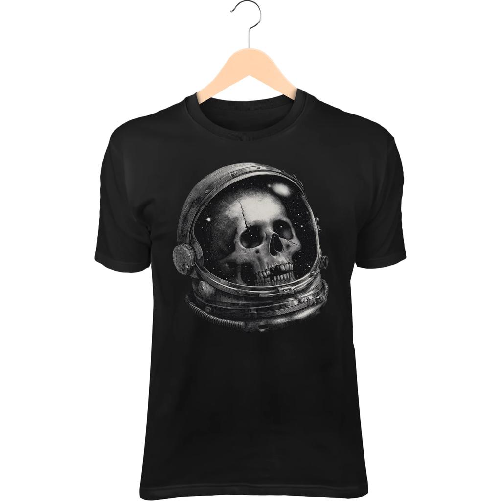 Skull Astronaut T-Shirt – Cracked Helmet, Black Hole, Stars & Bones