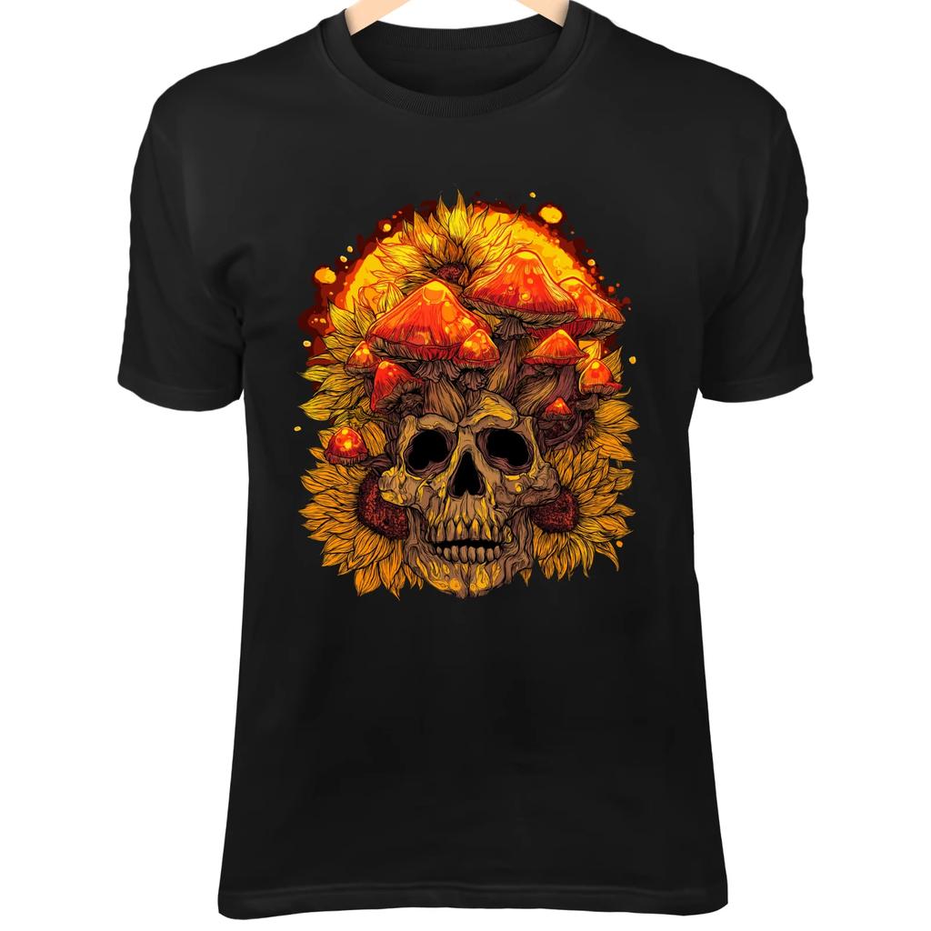Decorative Skull Crowned with Glowing Mushrooms - Sunset Hues Summer Gothic Fant