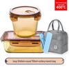 Cartoon Style Glass Lunch Box Set with Cutlery