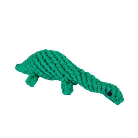 The hand-woven dinosaur shape is cute and eye-catching, stimulating your dog's curiosity and encouraging playful biting. Ideal for interactive play like tug-of-war and chasing, it helps expend energy while strengthening your bond. Made from natural cotton rope, it is odorless, hypoallergenic, and safe—won't produce sharp fragments when worn—ensuring a secure chewing experience for your pet.