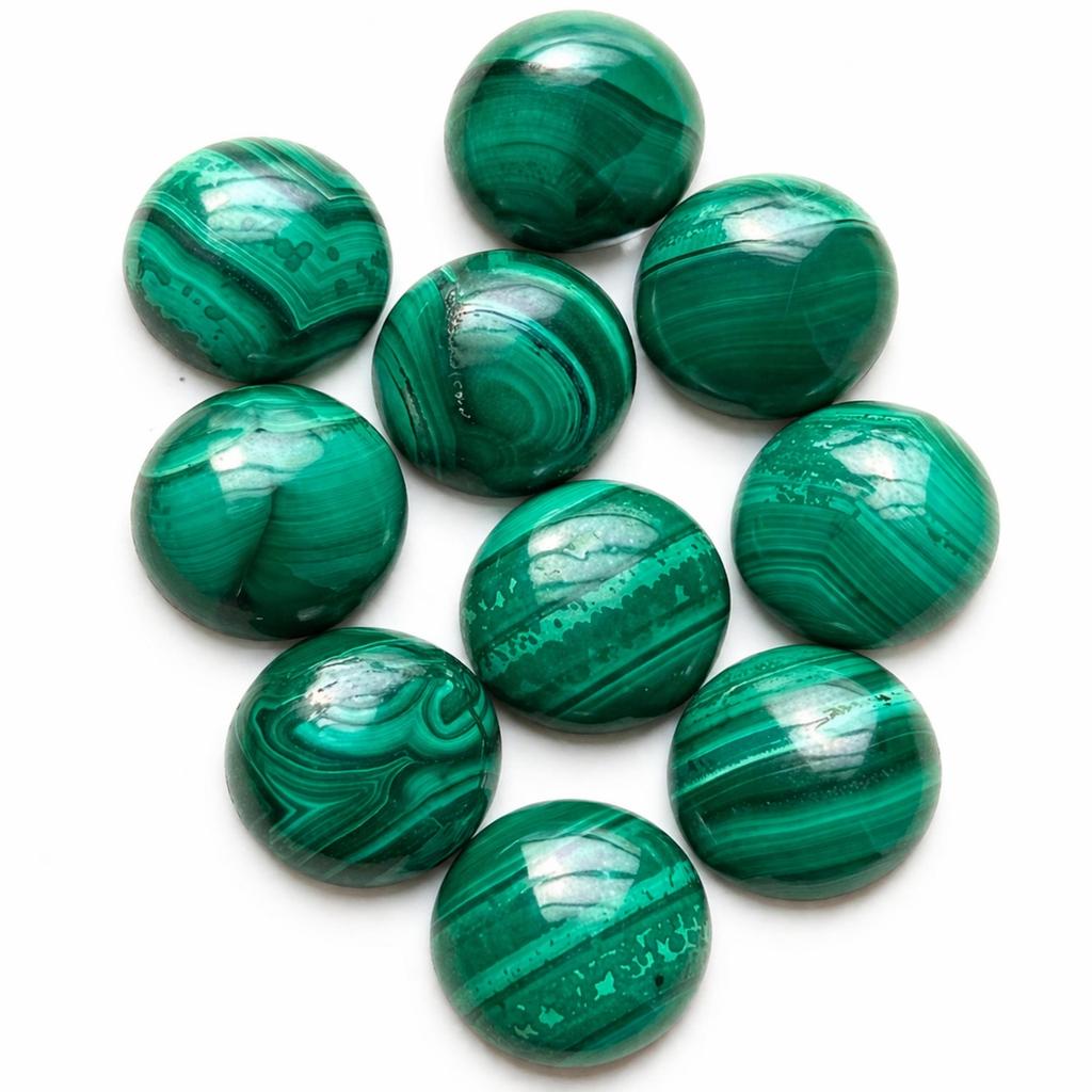 Natural Malachite Cabochons Round Flat Back Gemstones, Green Banded Malachite Loose Stone for Jewelry Making
