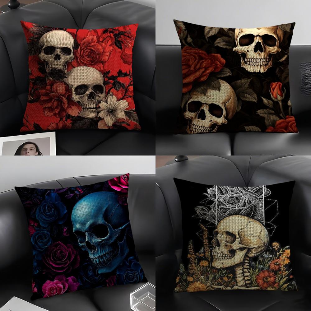 Luxurious Skull Pattern Cushion Cover Natural Linen Organic Fabric DoubleSided Printing Sofa Home Decor Breathable